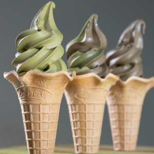今年も、香ばしい香味のある「ロースト抹茶」を練り込んだソフトクリーム、焙煎の度合いに応じてライト、ダーク、そしてライトとダークのミックス(SWIRL)の3種類のご提供を開始いたしました。クリーム量約150gを大ぶりコーンに盛り付け、高さは約18cmでボリュームたっぷりのデザートです。フリーでロースト抹茶パウダーやシーソルト(藻塩)のトッピングもお楽しみいただけます。是非、ご賞味ください。